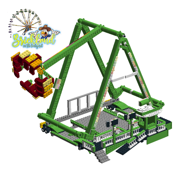 Insgesamt finden 12 Mini-Figures in der Gondel Platz. Die “Congo” überragt so manches Fahrgeschäft, denn es schafft knapp 90 cm Schwunghöhe. Einfach nur Mega. Im Bahnhofsbereich ist viel Platz für Wartende, ebenso ist der Ein- und Ausstiegsbereich großzügig gehalten. Das Karussell besteht aus zwei Elementen; einmal der Mittelteil (Karussellaufbau auf zwei Transportwagen, Rückwand), sowie dem Bahnhofsbereich. Lässt sich als Gesamt-Modell stabil von Zimmer zu Zimmer transportieren. Um dem Maßstab treu (6 Noppen) und der Optik treu zu bleiben, sowie die Bespielbarkeit für Kids nicht zu verlieren, ist das Modell nicht für eine Motorisierung vorgesehen. Dennoch ist die Gondel drehbar und der Pendelarm schwingt auch ohne Motor in schwindelerregende Höhen. Schwungarm ist in verschiedenen Höhen arretierbar.