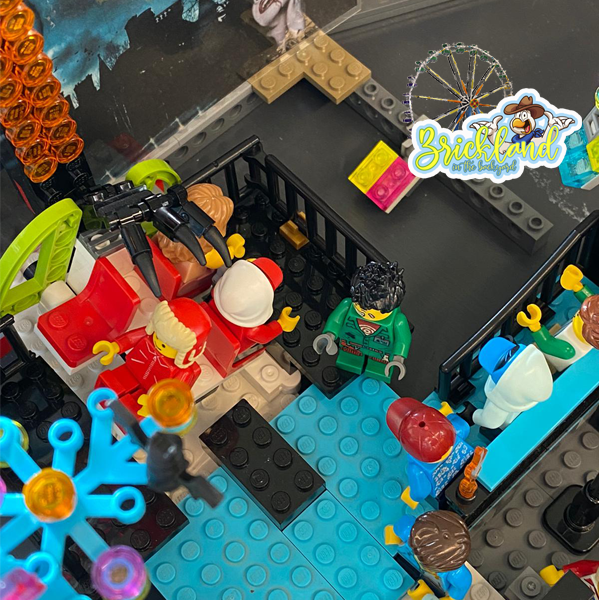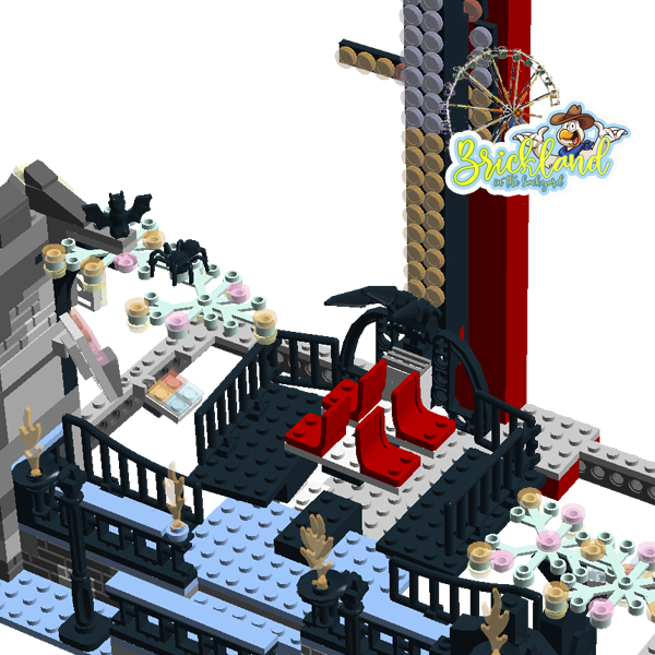 In zwei Gondeln finden insgesamt 8 Minifigures Platz. zum Einstieg kann der Boden an die Gondel herangeschwenkt werden, zur Fahrt ist dieser Einstieg einfach beiseite klappbar. Das Modell ist einfach und schnell mit einer Lego Motorisierung nachrüstbar. Wir rüsten nach, sobald wir die Maße der neuen Lego Motoren kennen. Mit nur knapp 700 Bauteilen erreicht diese XL-Schleuder dennoch eine Flughöhe von 62 cm, ist mit den Grundmaßen von 35 x 22 cm aber recht klein und eignet sich daher auch perfekt für weniger große Dioramen. erhältlich als Bauplan mit oder ohne Decals, sowie nur die Decals.