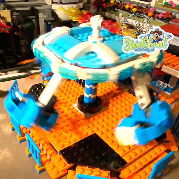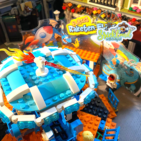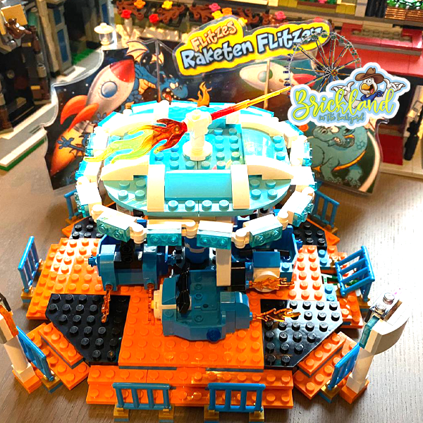 Was wäre eine Kirmes ohne die vielen strahlenden Kinderaugen. Insbesondere dann, wenn sie von den Eltern in ein Kinderkarussell gesetzt werden. Natürlich ist ein solches Karussell auf jeder Kirmes unerlässlich, so auch auf (d)einem Lego-Kirmes-Platz. “Flitzes Raketen Flitzer” thematisiert Drachen im Weltraum; eine witzige Kombination, die mit einer niedlichen Rückwand richtig toll zur Geltung kommt. Die auffälligen Farben sind Mini-Figure kindgerecht und lassen die Kids Schlange stehen. Insgesamt 8 Figures können in diesem kleinen Karussell Platz finden. Das Kassenhaus, sowie die beiden weiteren Rückwandelemente sind nicht miteinander verbunden, so dass bei der Positionierung auf dem Platz viel Spielraum gegeben ist. Ebenso ist die Bodenplatte es Karussells ein Mehrteiler.