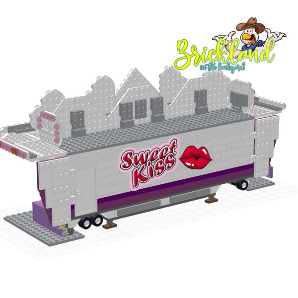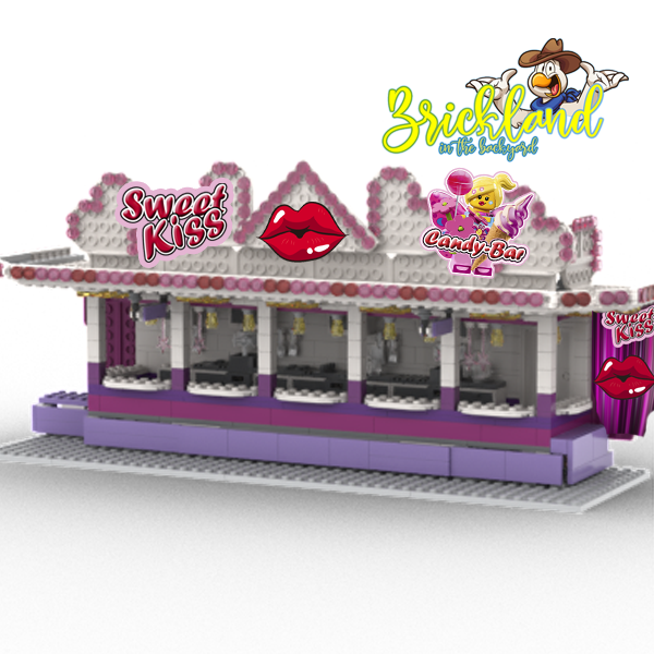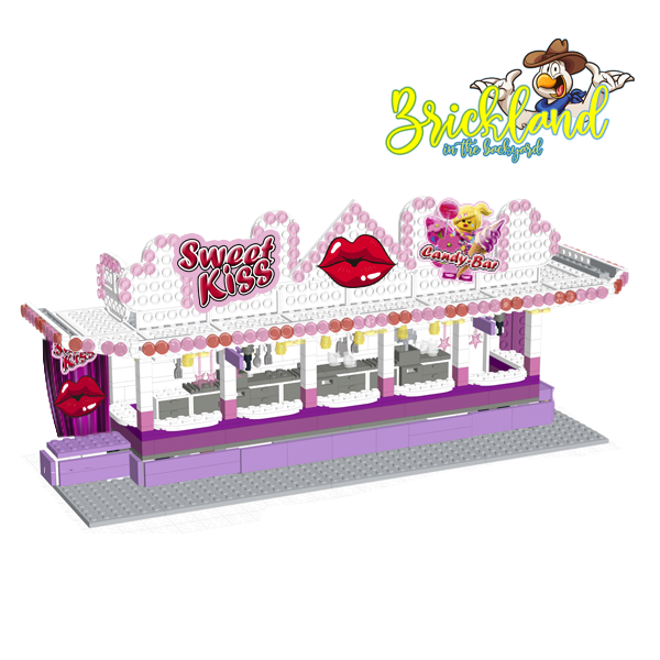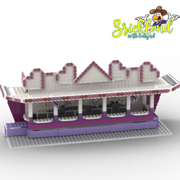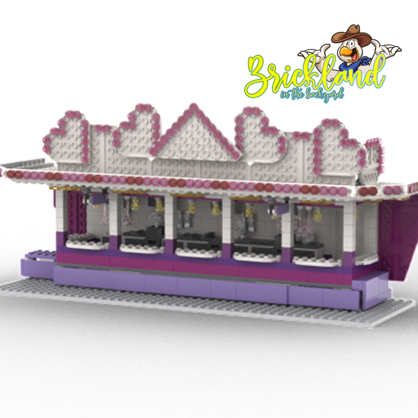 Mit schlichtem Front-Design in weiß und pink besticht diese Kirmesbude auch auf deinem (Lego-) Klemmbaustein Kirmesplatz.