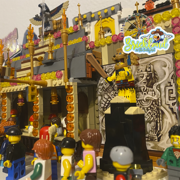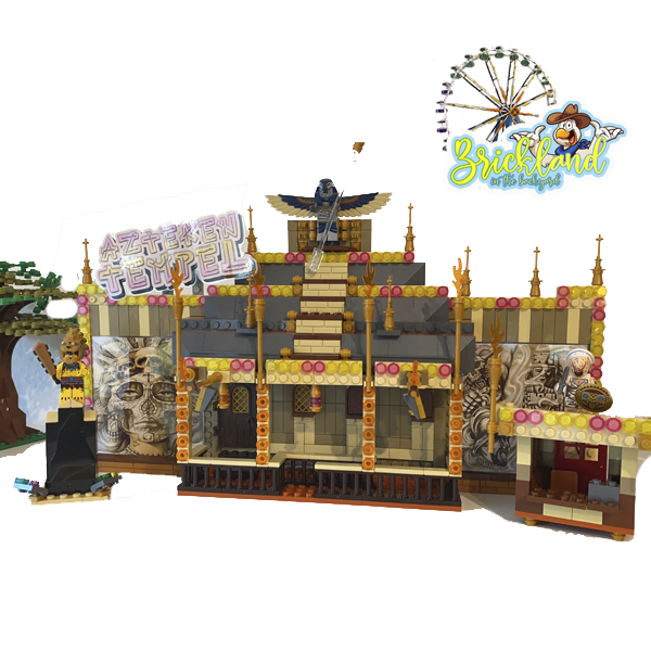 Mit der auffällig, großen Front lockt der Aztekentempel Schaaren von Minis an, die ein gruseliges Abenteuer erleben wollen.